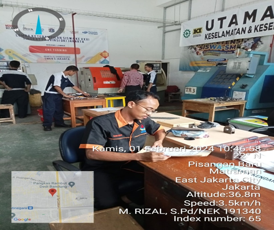 Asesor Pak Setyokohadi, sedang memeriksa hasil pekerja atau benda yang sudah selesai dan memberikan penilaian hasil uji sertifikasi Propesi dari hasil pekerjaan Poros dan mur.