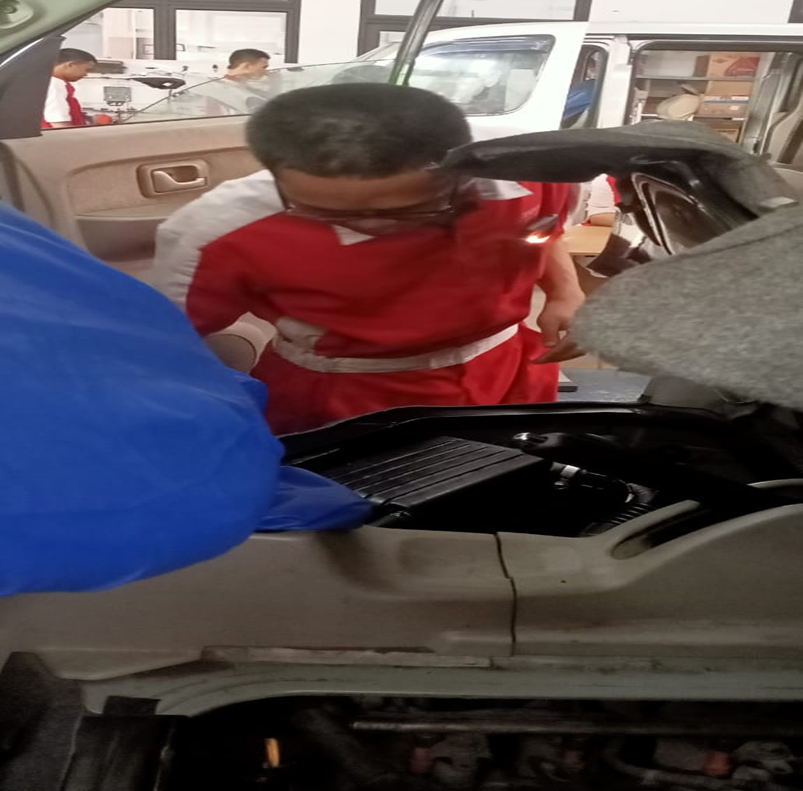 Memeriksa mobil atau dengan istilah Tune Efi dengan trabel di sistem engine-nya.setelah di cek maka hasil tune Up tersebut di uji emis gas buangnya.