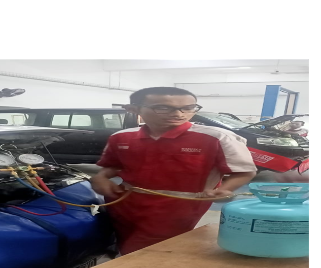 Siswa sedang melakukan pengecekan system' AC mobil, melakukan proses ke vakuman dan mengisi preon untuk sistem AC mobil.